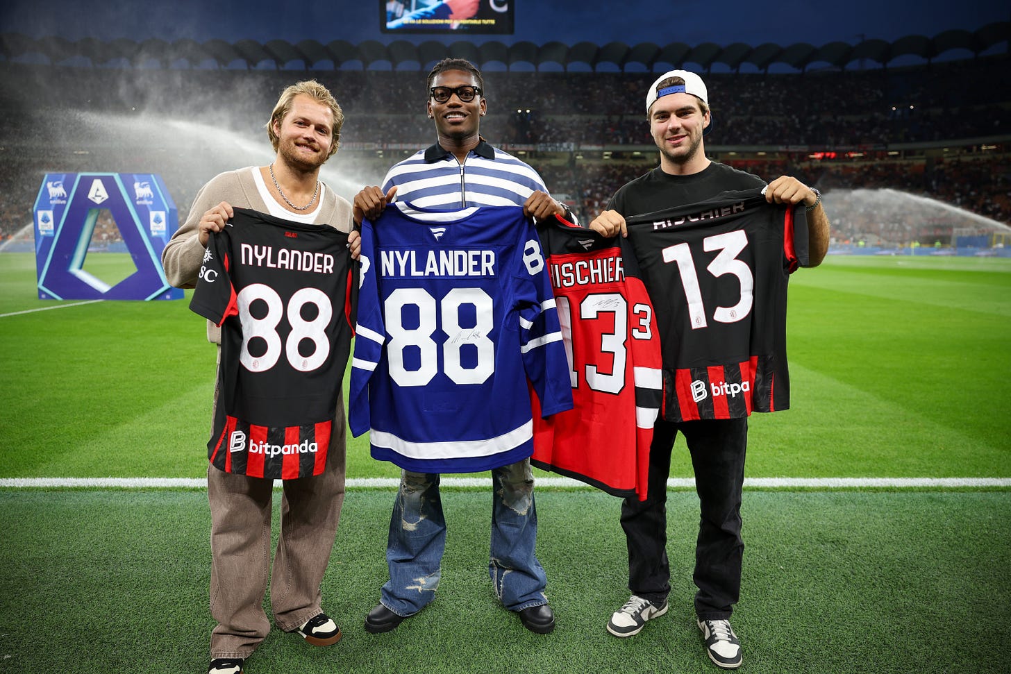 🏟️ On Saturday evening, Nico Hischier (New Jersey Devils) and William Nylander (Toronto Maple Leafs) met with Rafael Leão on the San Siro pitch ahead of Milan’s opener against newly promoted Cremonese.