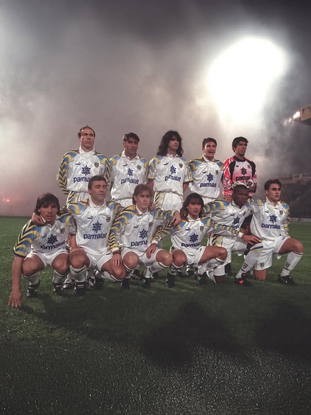 🫶 The new design pays homage to the Parma shirt of the 1995/96 season, which was worn by some true legends of the game, including Gianfranco Zola, Fabio Cannavaro, Thomas Brolin, the aforementioned Filippo Inzaghi, and Faustino Asprilla.