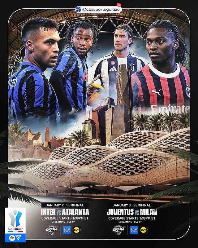 🏆 EA SPORTS FC Supercup Final: Inter v Juventus or Milan (2pm ET)